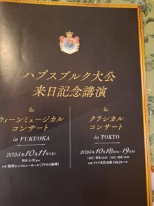 大公のお話はハプスブルク家の歴史といろんな方々との出会いでした。それをお聞きしながら、私も私の横の席の友人も、この劇場の御客様の皆さんにご家族のご家庭の歴史があるのですから、私も藤田家の歴史、嫁ぎ先の中島家の歴史、を知って私の子どもたちや孫に伝えていきたいと思いました。